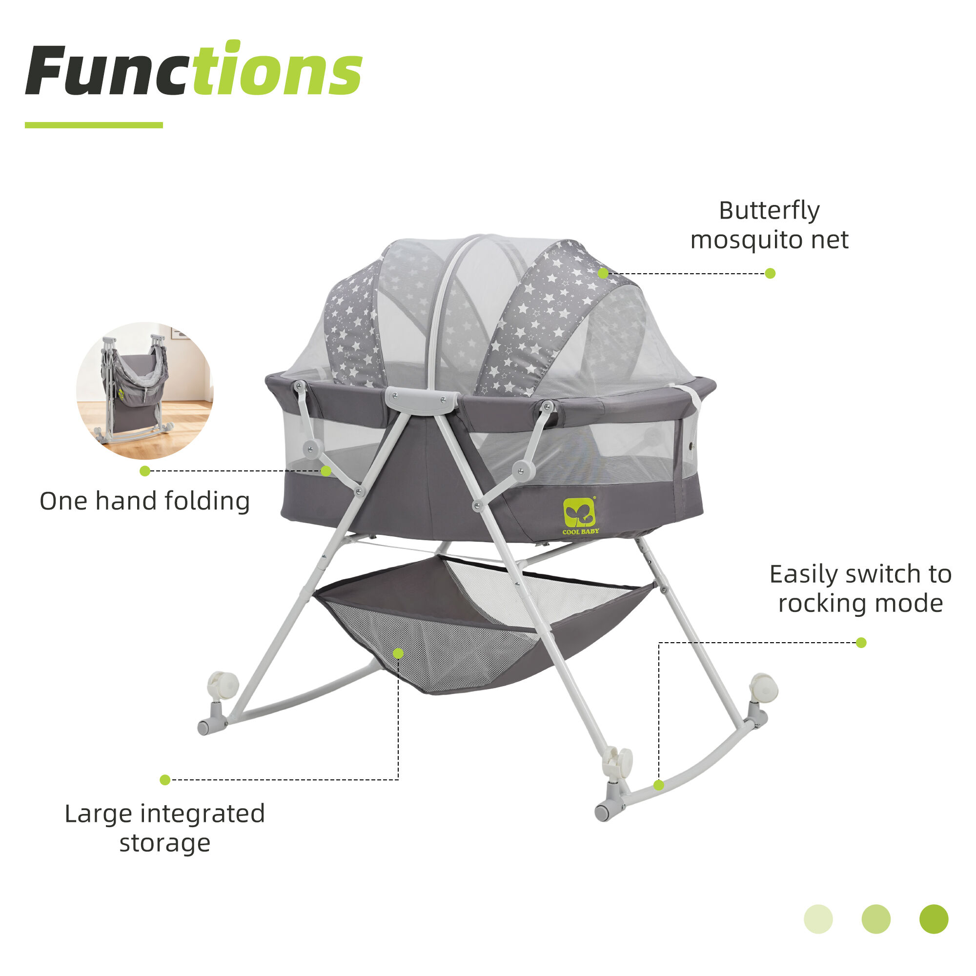 Ორმოდური მოქნილობა: Სტატიკური ჩანთა + როკინგის რეჟიმი: მხარს უჭერს მარტივ გადართვას როკინგის რეჟიმზე დამატებითი ასამბლების გარეშე. ნაზი, რიტმული თანხმობა ანალოგიურია მშობლის მხრების კომფორტისა, რაც ამშვიდებს ხასიათზე მყოფ ბავშვებს და უძინებს მათ; როდესაც ბავშვი მშვიდად ისვენებს, იგი გადაიქცევა სტაბილურ სტატიკურ ჩანთად. ამ ორმაგი რეჟიმის დიზაინით აღარ მოხდება ცალმხრივი ბავშვის როკერის შეძენა, რაც აკმაყოფილებს 0-36 თვის ასაკის ბავშვების ძილისა და ამშვიდების საჭიროებებს.