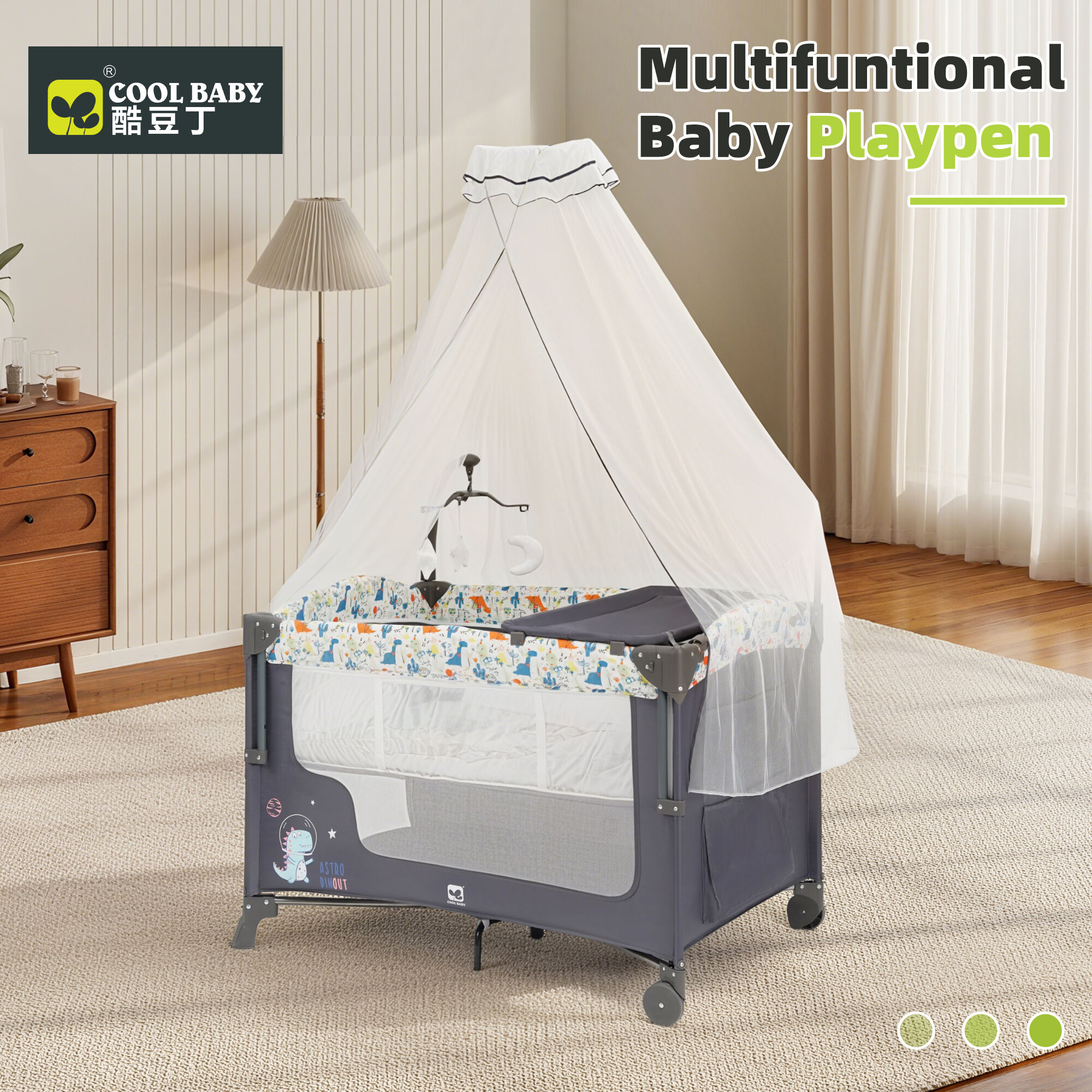 KDD06 Cool Baby Cute Dinosaur Printing Baby Playpen Foldable Baby Playard With High-pole Mosquito