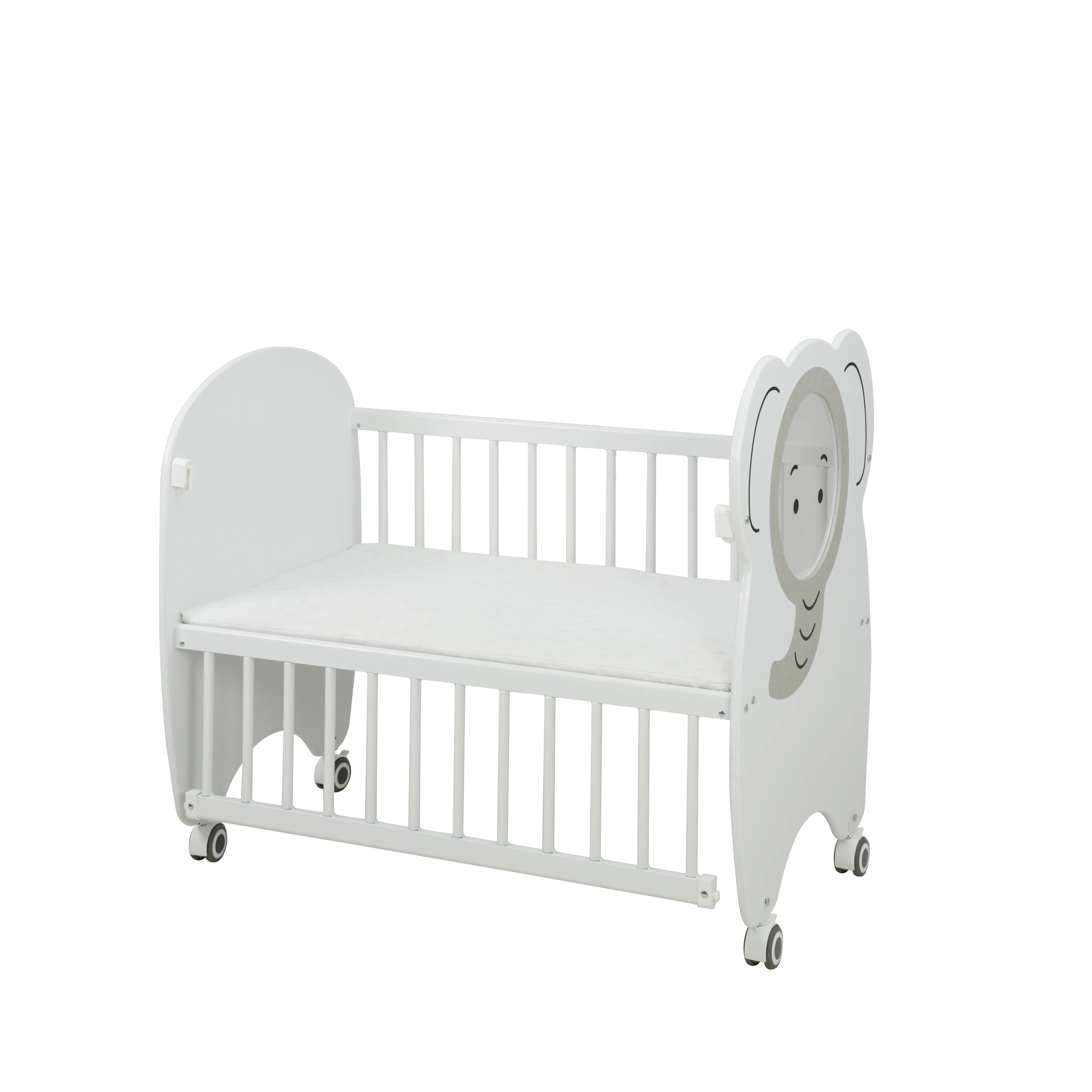 P2631 Cool Baby Cute Elephant Printing Wood Baby Crib With Side-opening Function