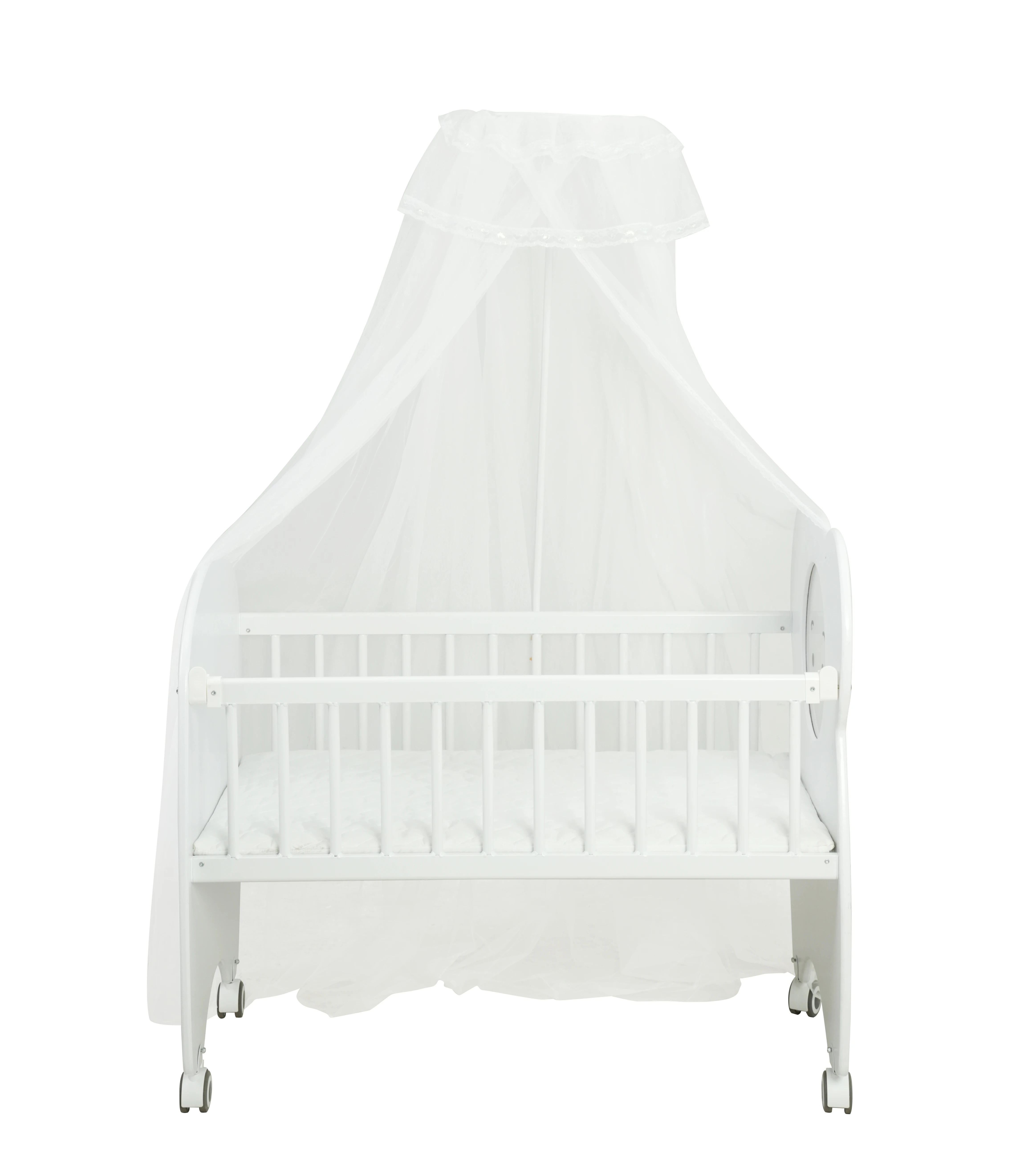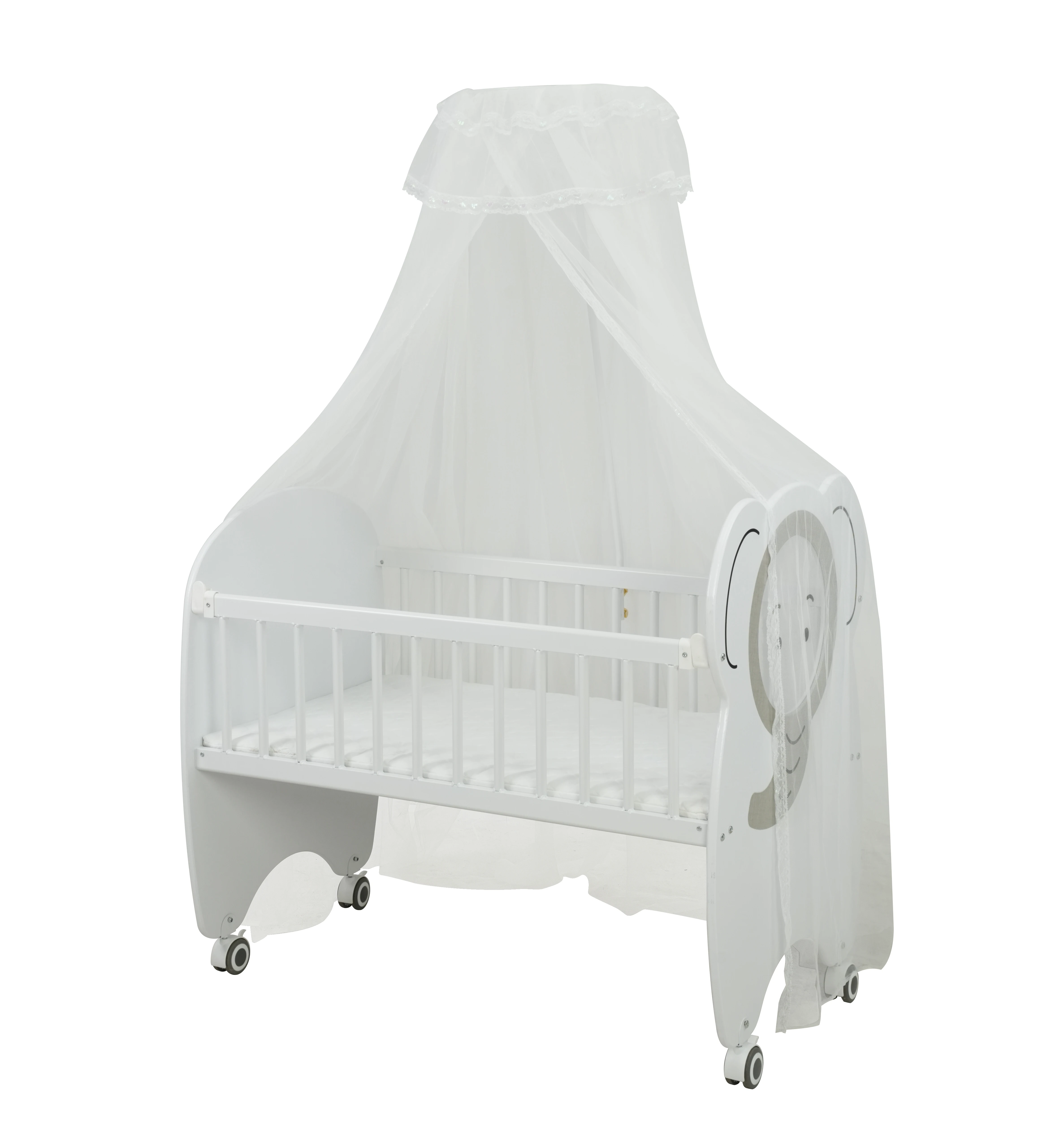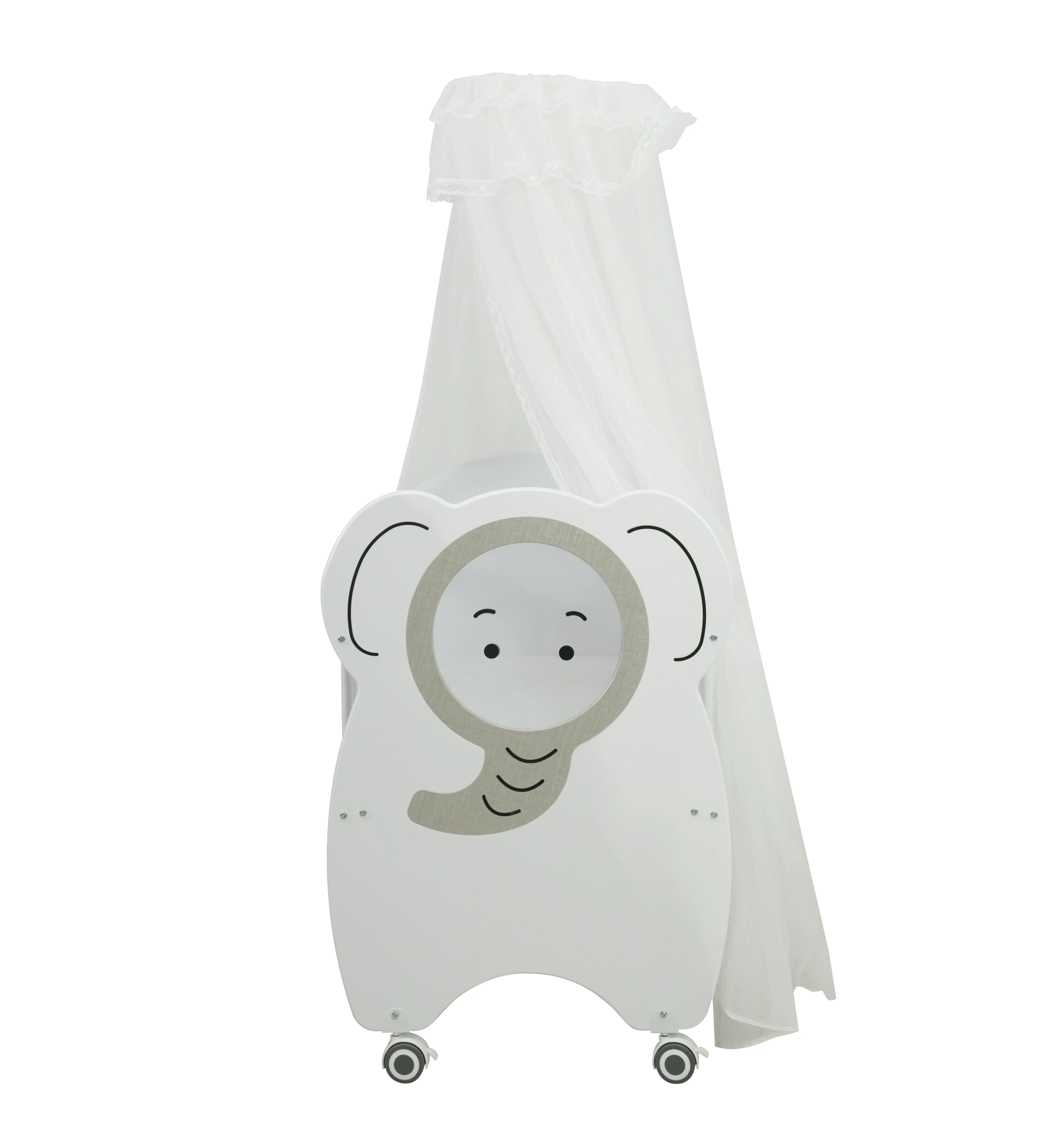 | Introduction | The headboard is designed with an elephant-shaped element featuring a round transparent acrylic panel for easy monitoring of the baby's condition. The side of the bed can be raised and lowered. High rod mosquito net. |