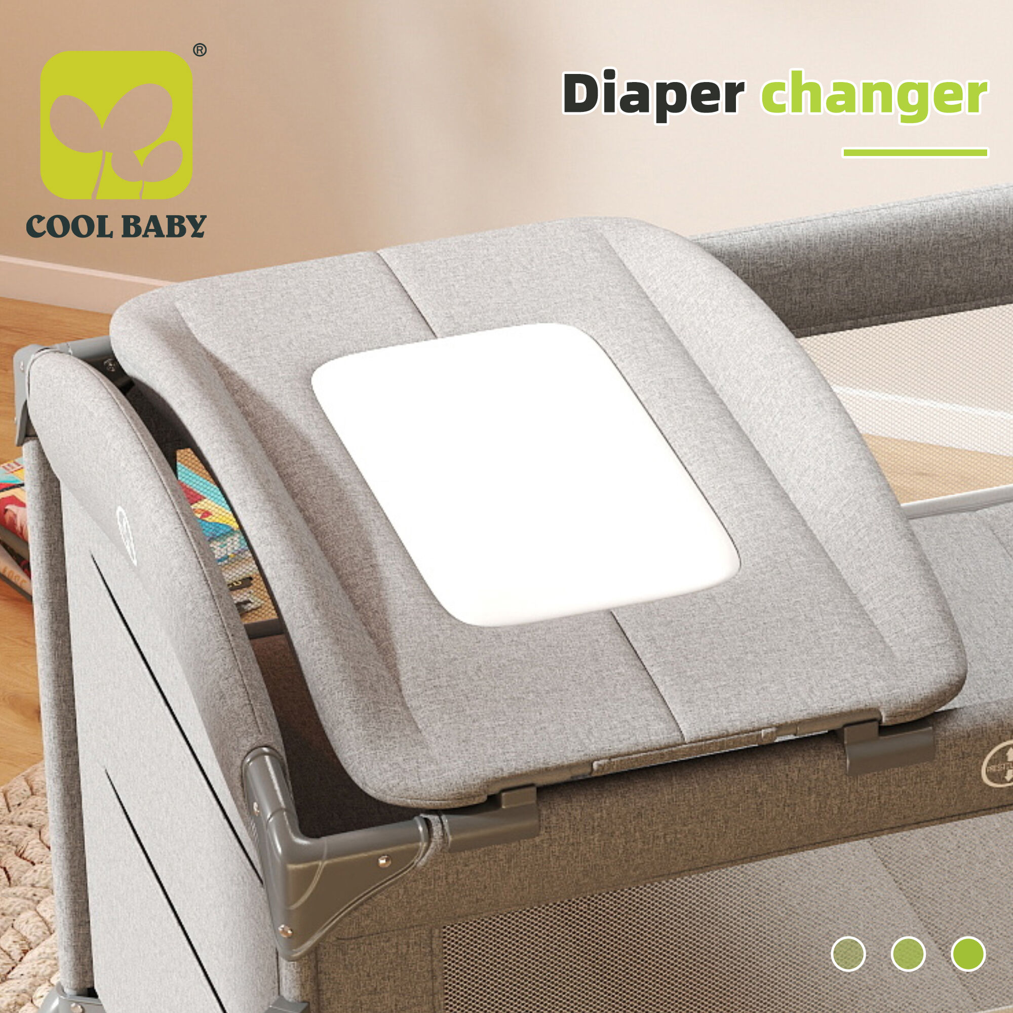 • Care & Convenience: (diaper changer) sits atop the crib, turning it into a quick, accessible changing station (no more rushing to the nursery mid-diaper emergency). Below, the spacious base doubles as storage for diapers, wipes, or toys, while the foldable mattress (soft yet supportive) adapts to sleeping or play modes.