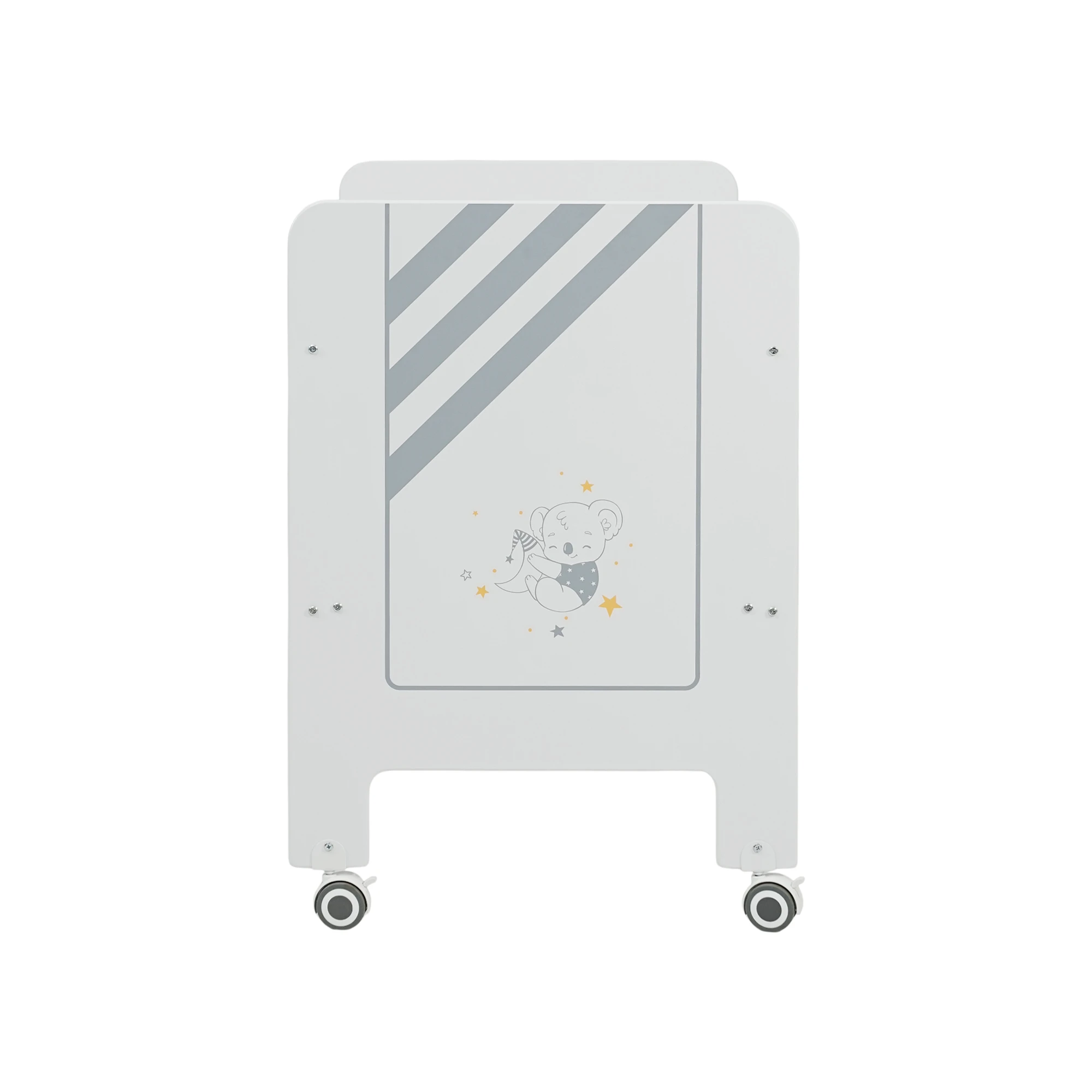 Adding a playful touch, the crib features a cute koala design (applied via screen printing) on its exterior panels. This whimsical detail adds visual appeal to the nursery without compromising the crib’s sleek, functional aesthetic—appealing to caregivers seeking both style and utility.