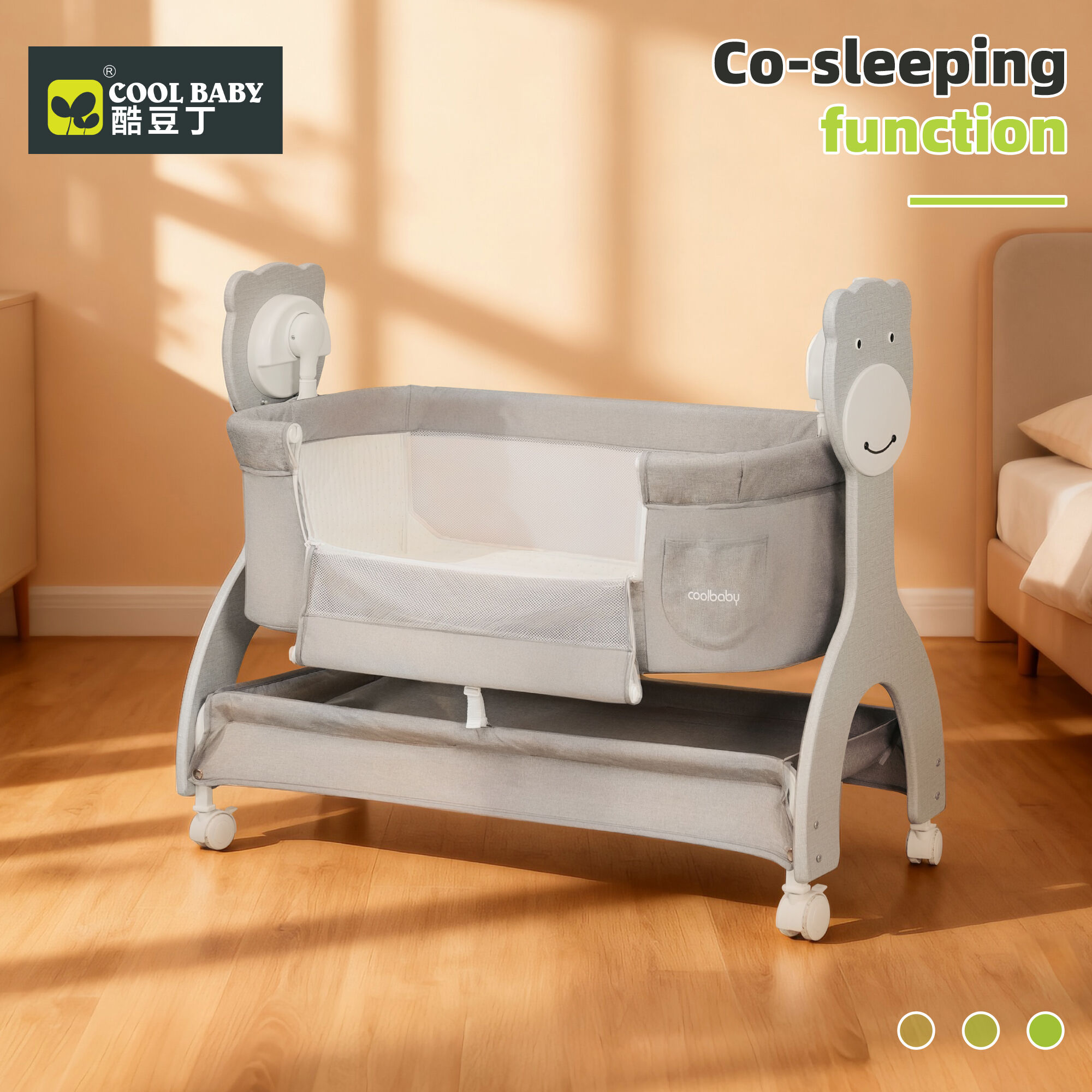 - Co-Sleeping Function: The crib’s side panel can be easily opened and secured to your bed (thanks to its adjustable height), letting you keep your baby within arm’s reach overnight—ideal for night feeds or comforting.