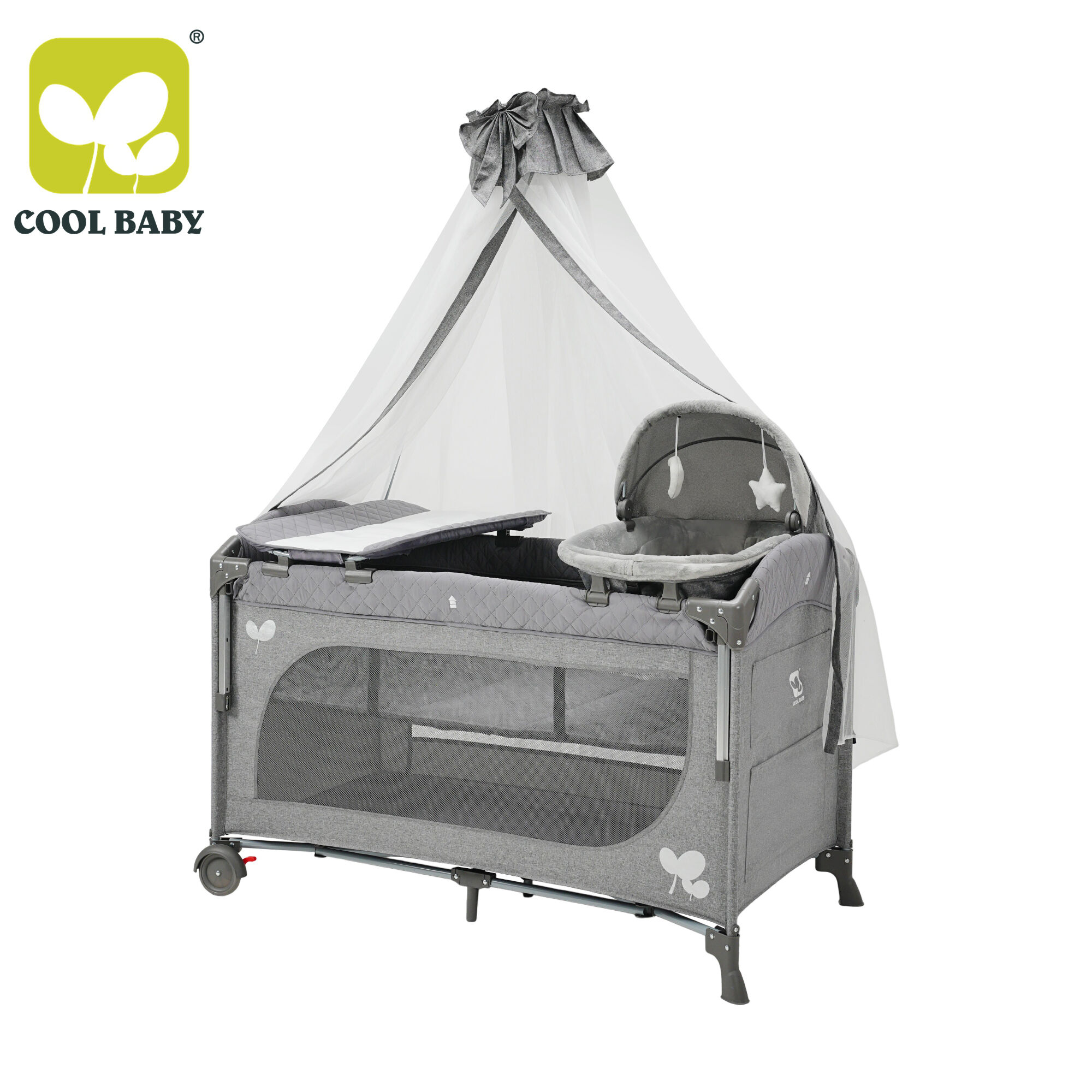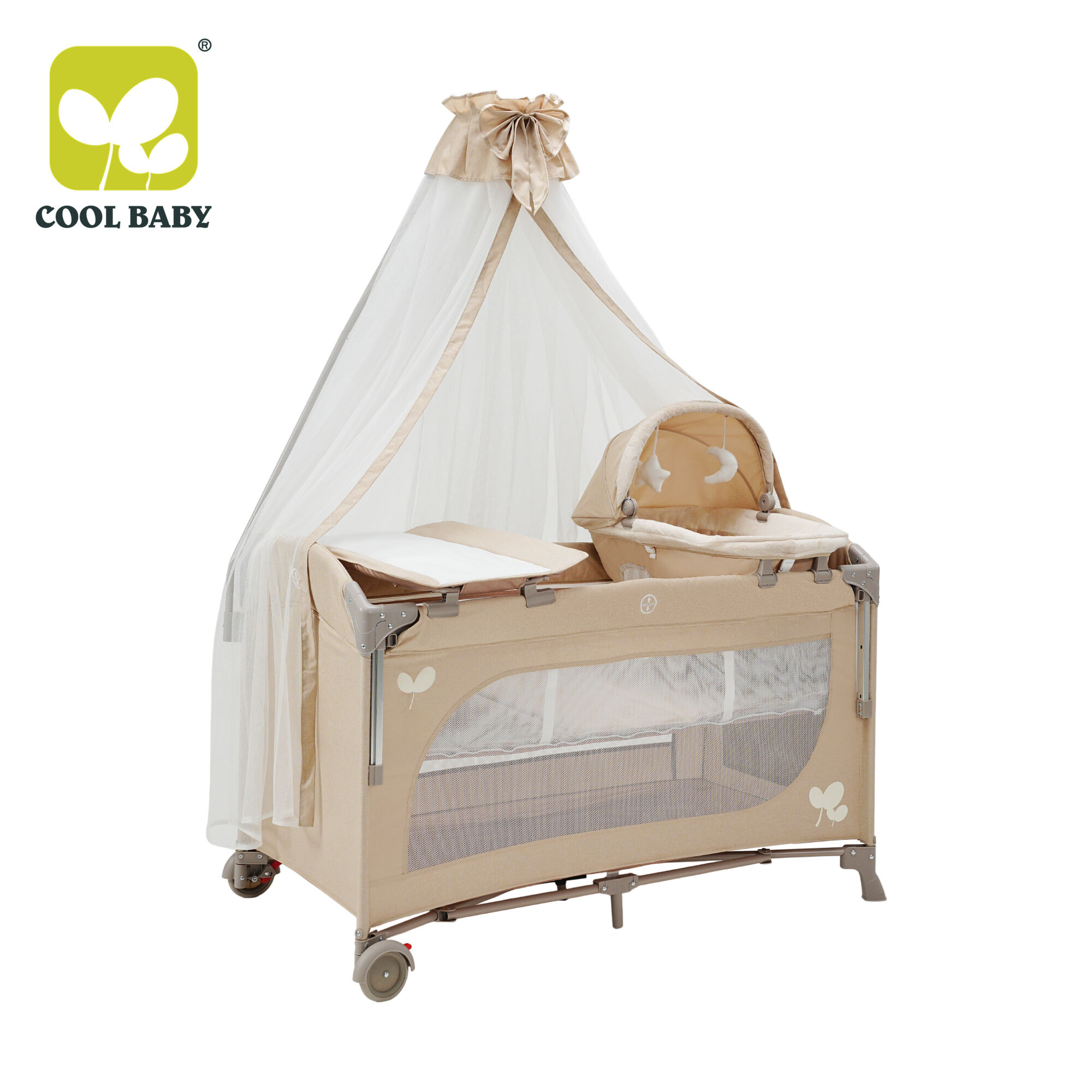 KDD11 Cool Baby High Quality Easy Folding Baby Travel Bed Baby Playpen with Modern Design and High-pole Mosquito Net