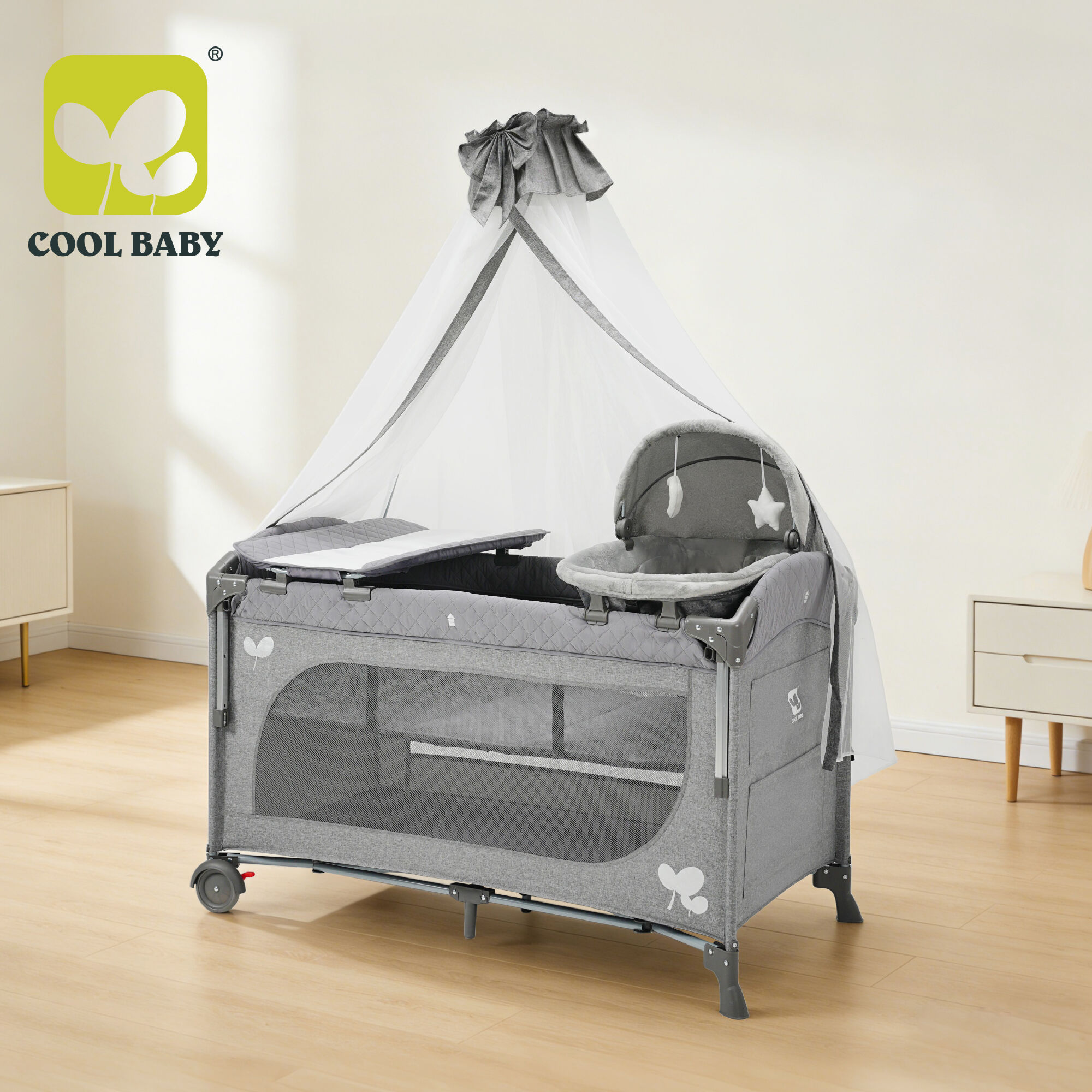 Nursery Center: As a core functional module, it is equipped with two fun toys to create a comfortable sleeping environment for babies. The toys are made of safe and non-toxic materials, with soft colors that can attract the baby's attention, help them fall asleep quickly, and provide moderate entertainment when the baby is awake, promoting sensory development.