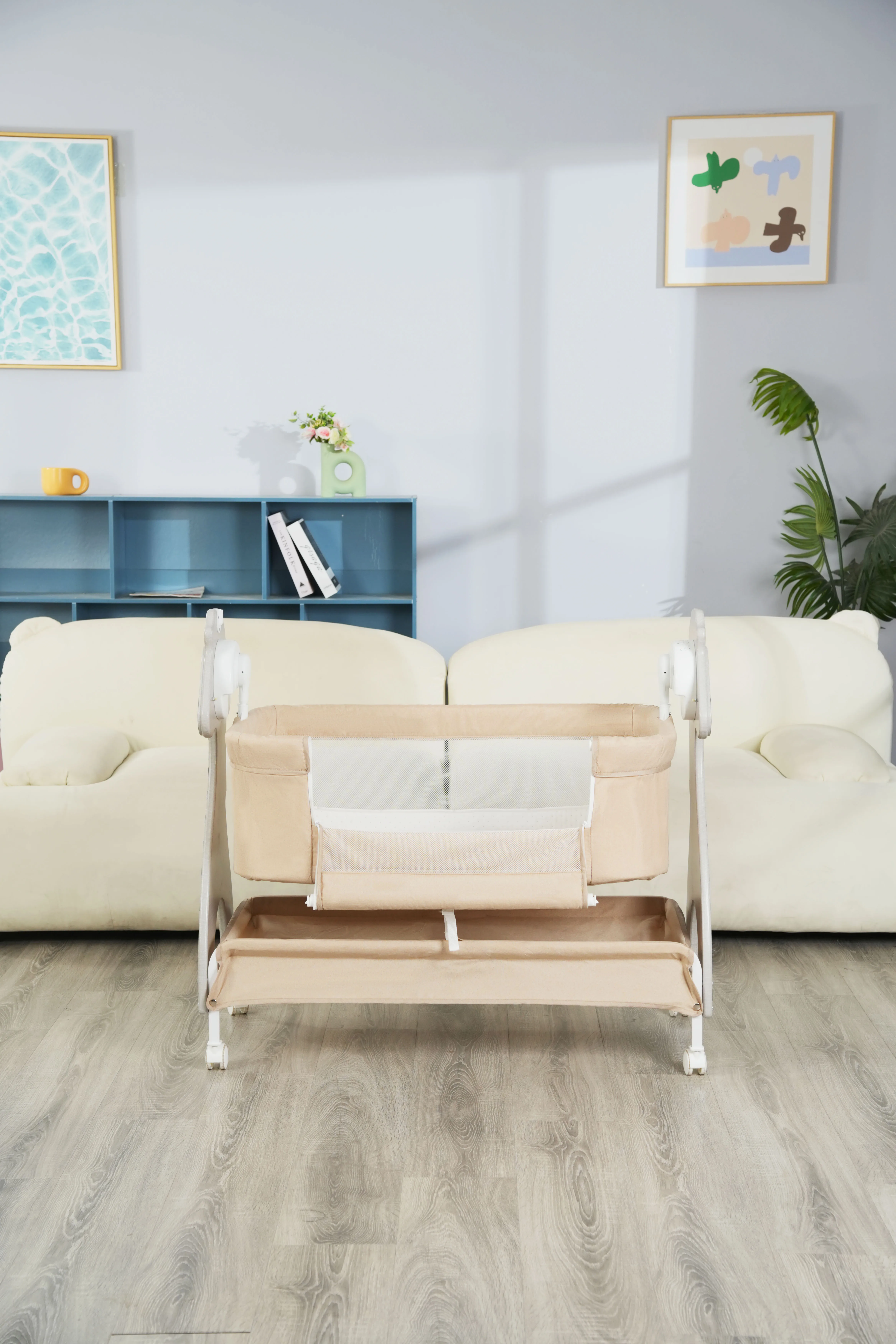 Side-Opening Co-Sleeping Function for Convenient Care: With the side-opening design (co-sleeping function), the swing can be seamlessly connected to the parent's bed. It eliminates the need for parents to get up frequently at night to check or comfort the baby, making nighttime feeding, diaper changing, and care more convenient, while also enhancing the sense of security for the baby.