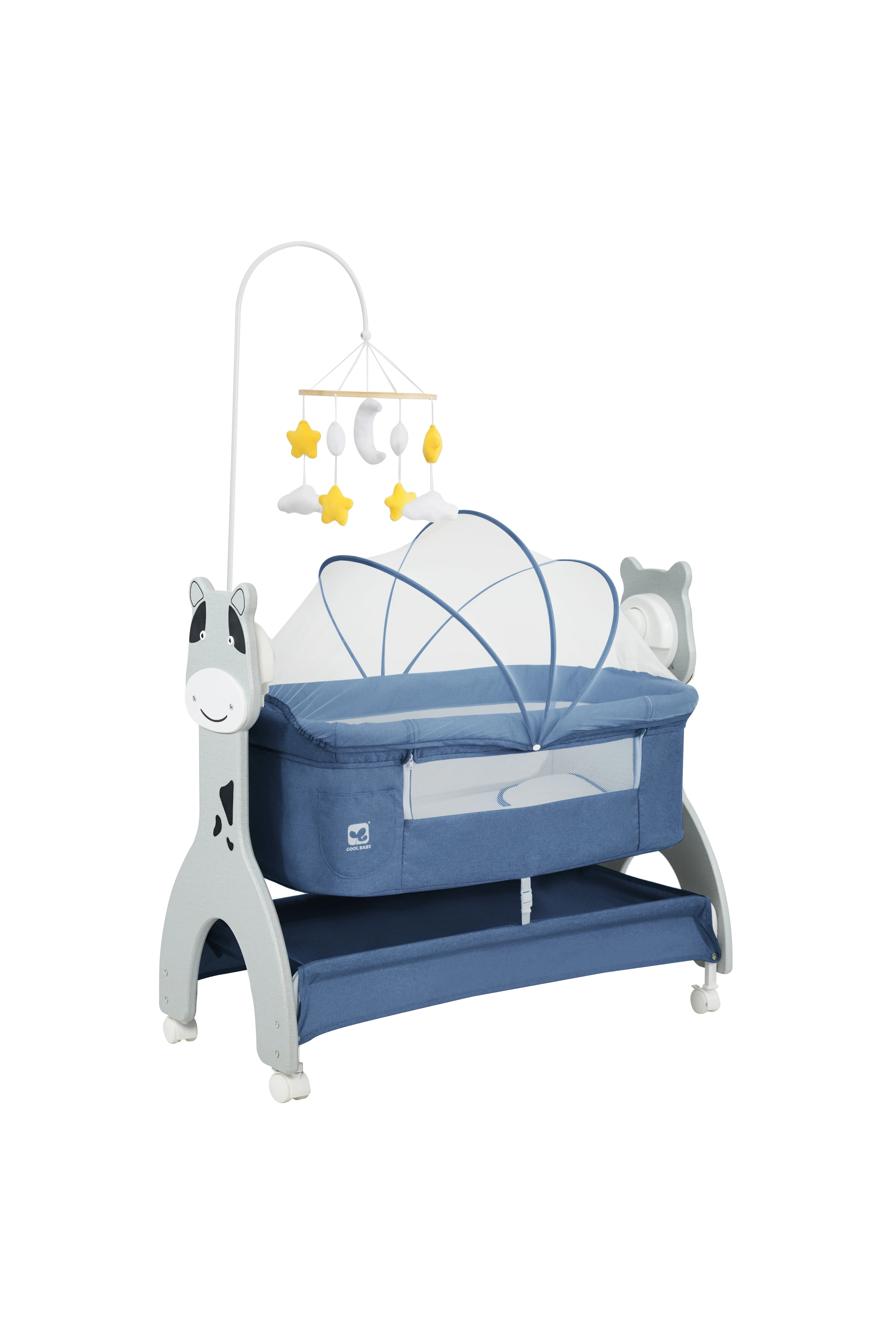Cute Cow Printing & Bigger Size Design: Features an adorable cow-themed printing, adding a lively, farm-style charm to the baby’s nursery or living space—easily capturing the baby’s interest and matching various home decors. As a “bigger size” crib, it offers more lying space than standard models, ensuring babies aged 0-9 months (even those growing faster) can lie comfortably without feeling cramped, adapting to their growth needs for a longer time.