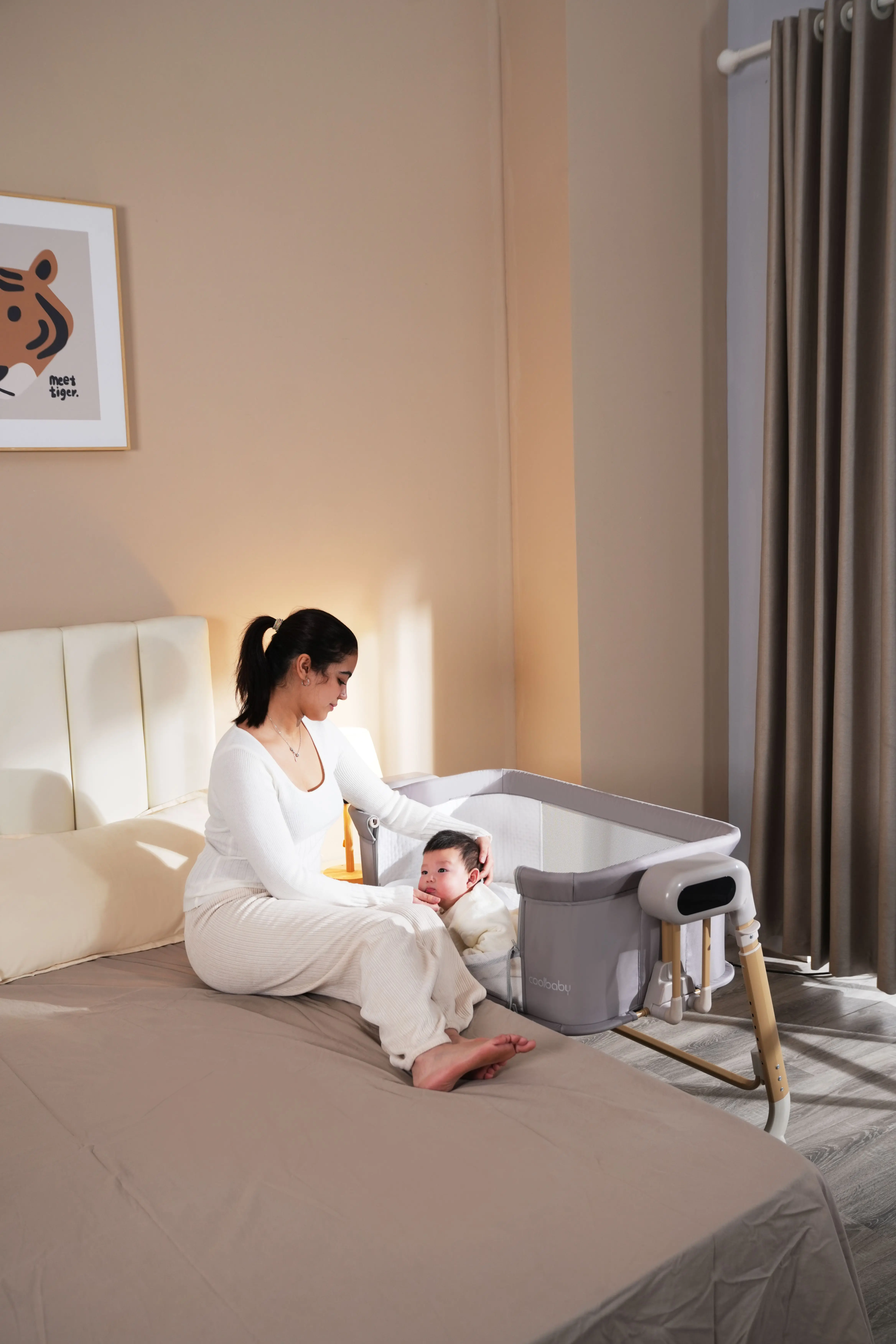 5 - Gear Height Adjustment & Side - Opening Splicing Function: Comes with five gear height adjustments to adapt to different bed heights. Plus, the side - opening design enables seamless splicing with the parent's bed. This not only ensures a better fit with various bed heights but also makes it easier for parents to care for the baby at night without straining their backs, enhancing convenience and comfort.