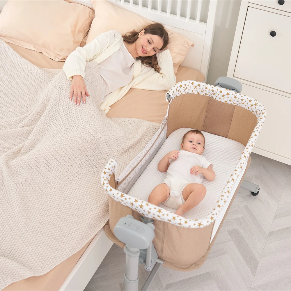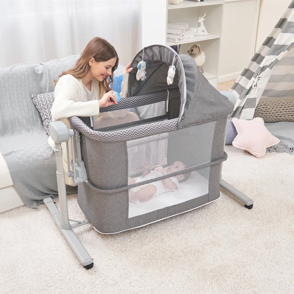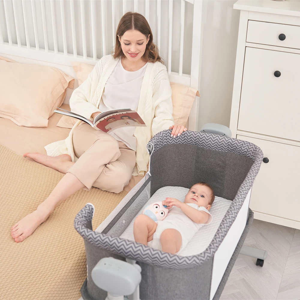 Customizable Timing & Height Adjustment: Comes with 3 timer settings to control swing duration. Offers 5 height adjustments and a co-sleeping function, enabling seamless splicing with adult beds for convenient nighttime care and adaptation (adapting to) different bed heights.