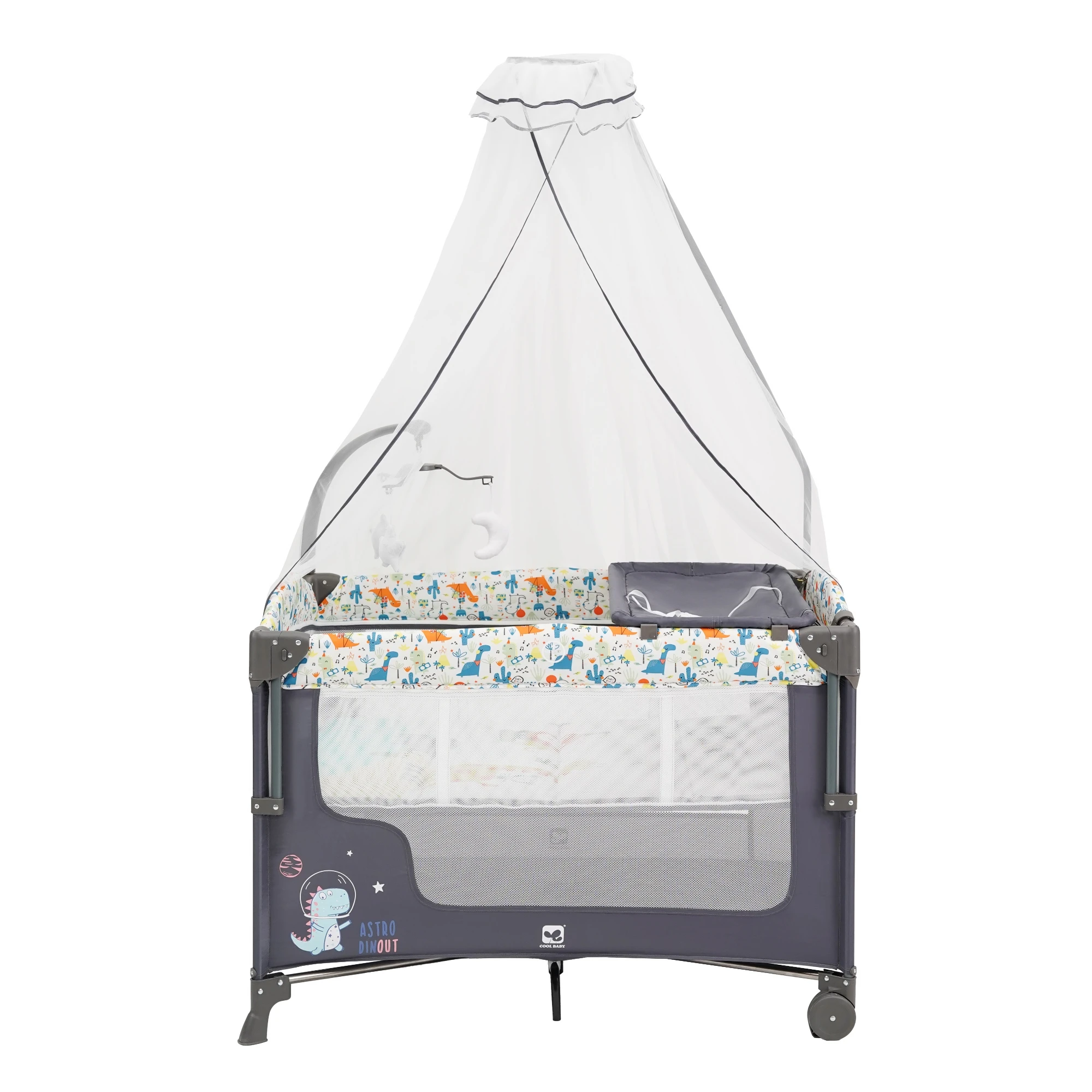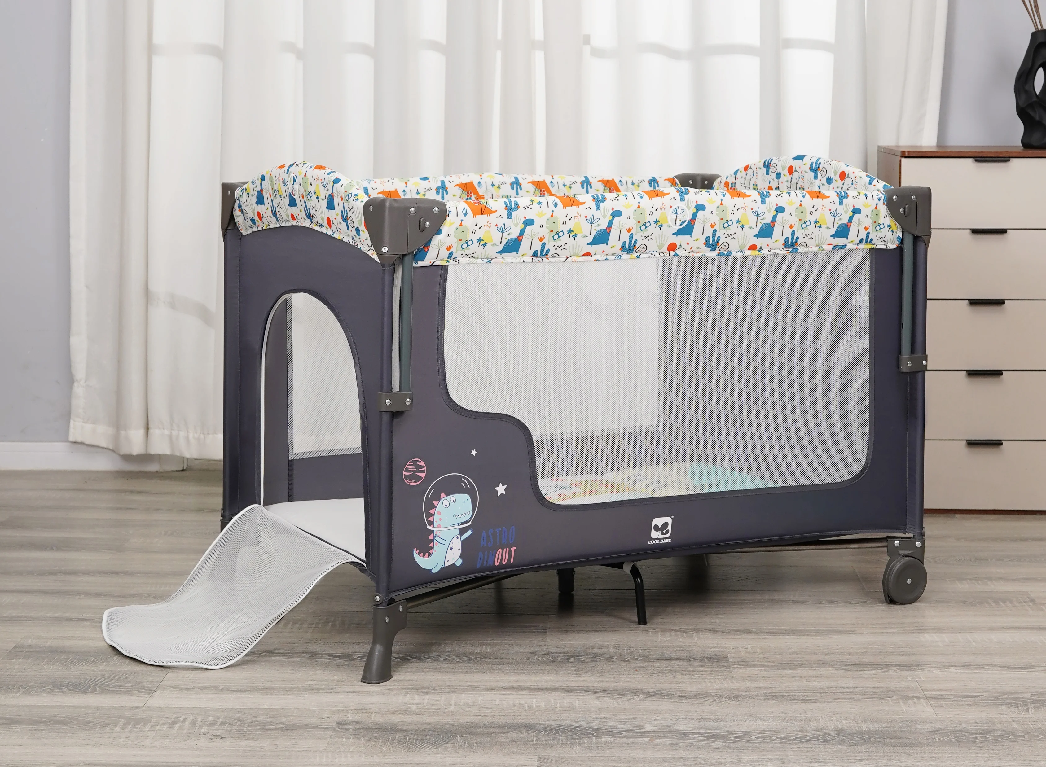 P9061G01 Cool Baby Cute Dinosaur Printing Baby Playpen Foldable Baby Playard With High-pole Mosquito