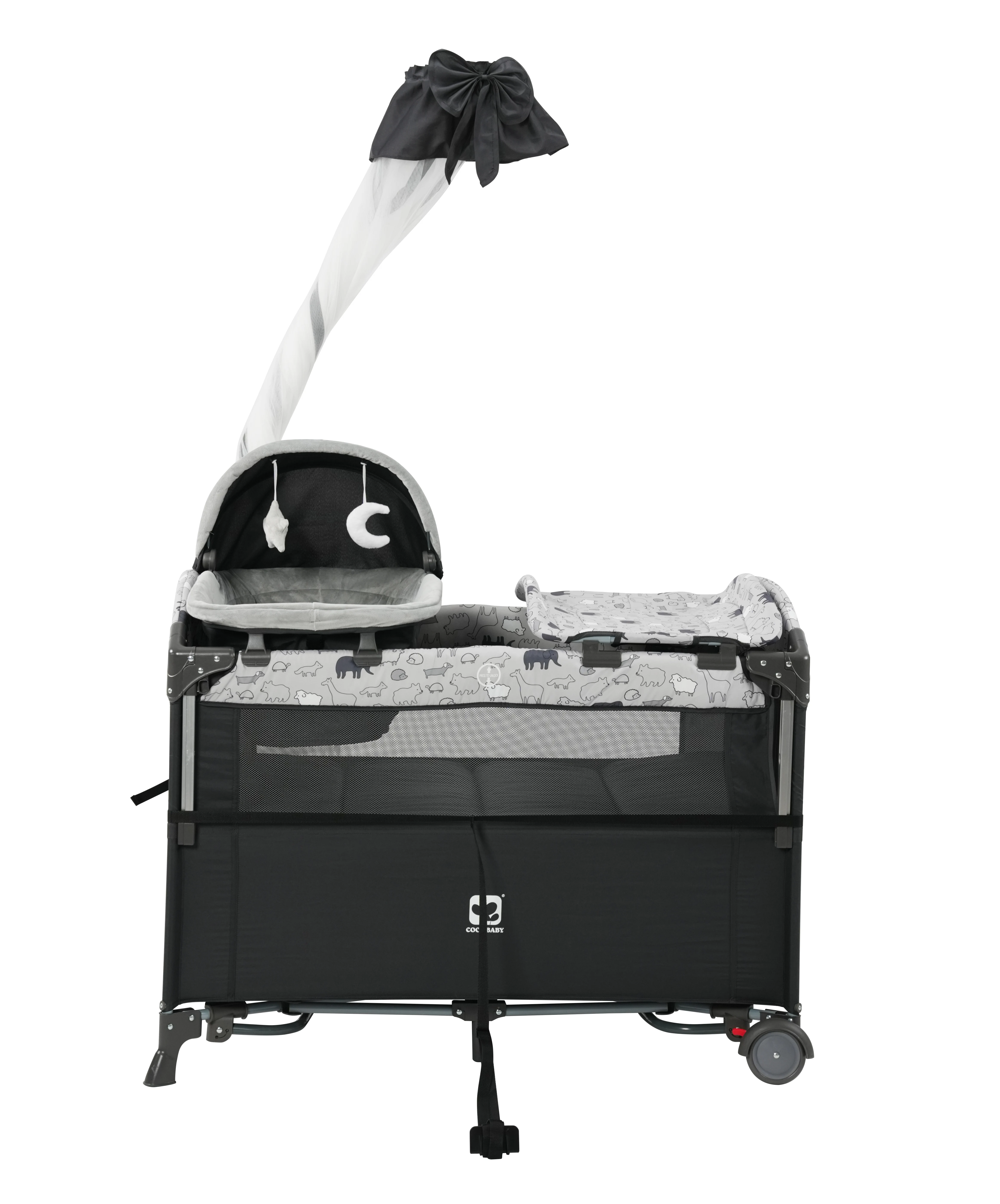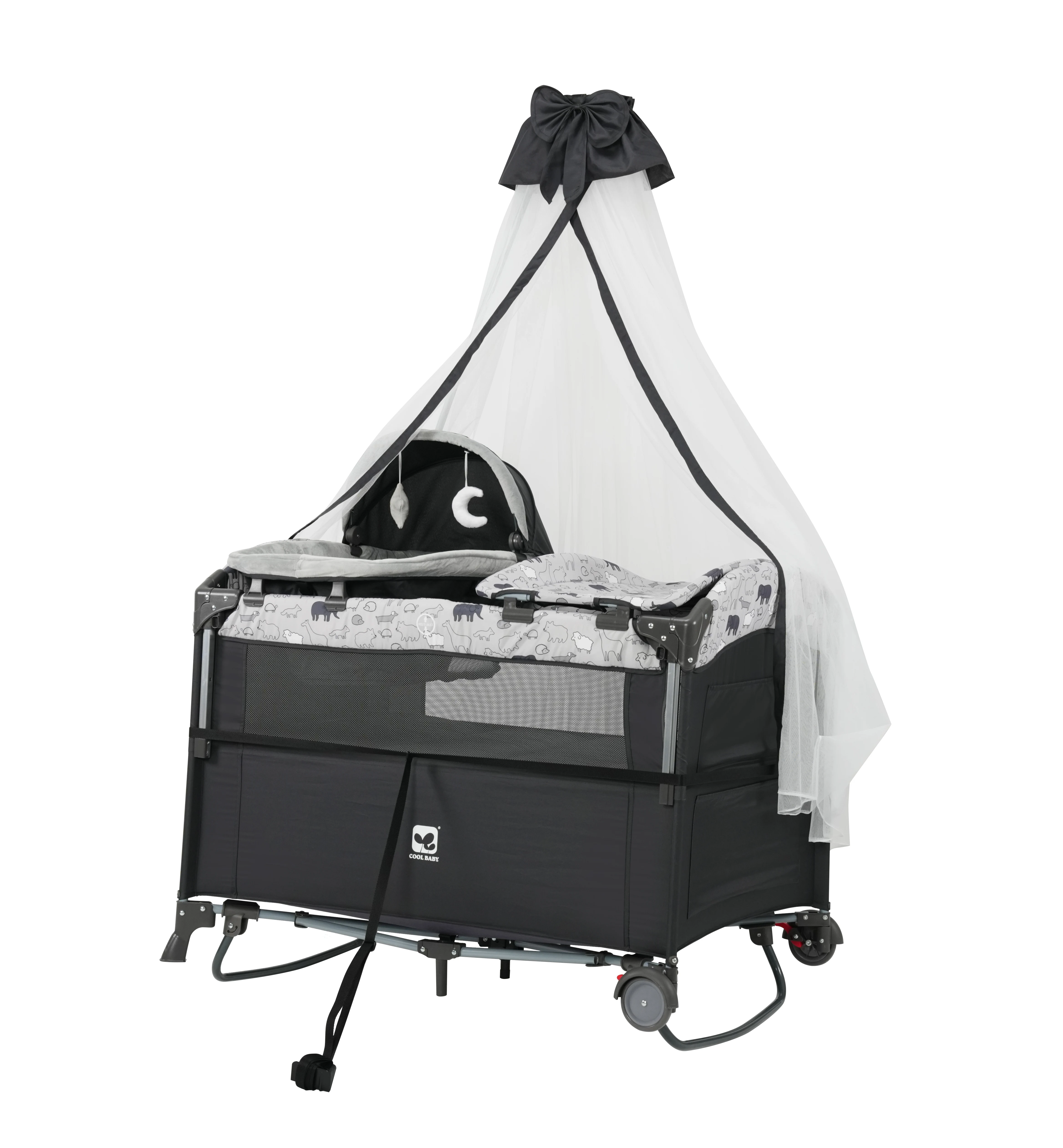 All-in-One “Nursery Center” Design for Multi-Scenario Care: Integrates 6+ core functions—co-sleeping bedside bed, portable bassinet (infant sleeping space), playpen (active zone), diaper changer (care station), rocker (soothing tool), and mosquito protection. This “one-stop” solution eliminates the need for separate baby furniture (e.g., standalone rockers, diaper stations, or bassinets), saving home space and streamlining daily care (feeding, sleeping, playing, diaper changes) for infants.
