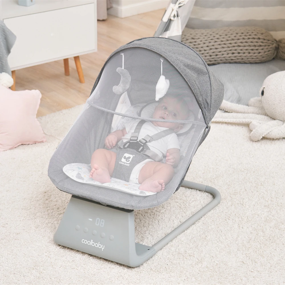 5-Speed Rocking for Customized Soothing: Offers 5 adjustable rocking speed options, tailored to different moods and needs of newborns. Gentle sways calm fussy babies or lull them to sleep, while slightly lively speeds entertain alert infants during awake time—parents can easily switch speeds to find the perfect rhythm that keeps their baby relaxed and happy, replacing tiring manual rocking and freeing up hands.