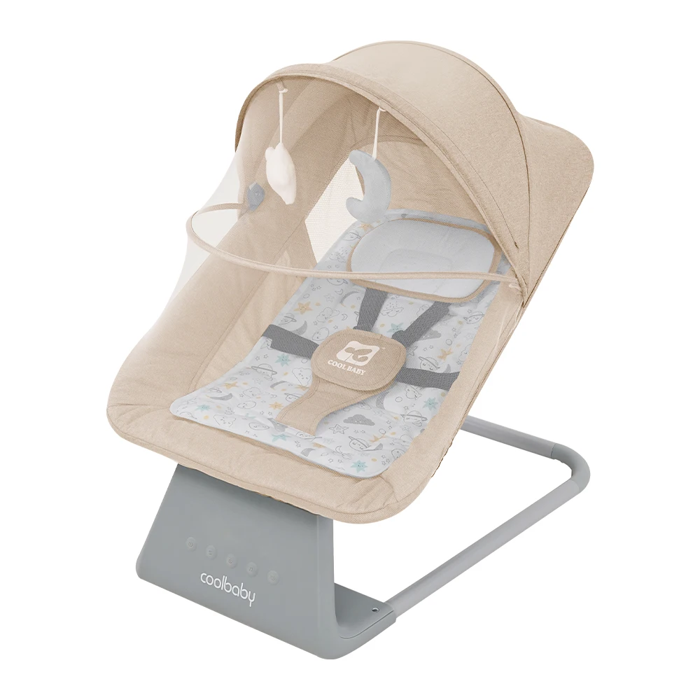 Mosquito Net with Canopy for All-Round Protection: Includes a mosquito net with a canopy that combines insect defense and light shading. The net fully encloses the swing, blocking mosquitoes, flies, and other small insects to protect the baby’s delicate skin from bites—essential for summer or indoor spaces near open windows. The canopy also shields the baby from direct sunlight or harsh indoor lights, creating a soft, cozy environment that promotes relaxation.