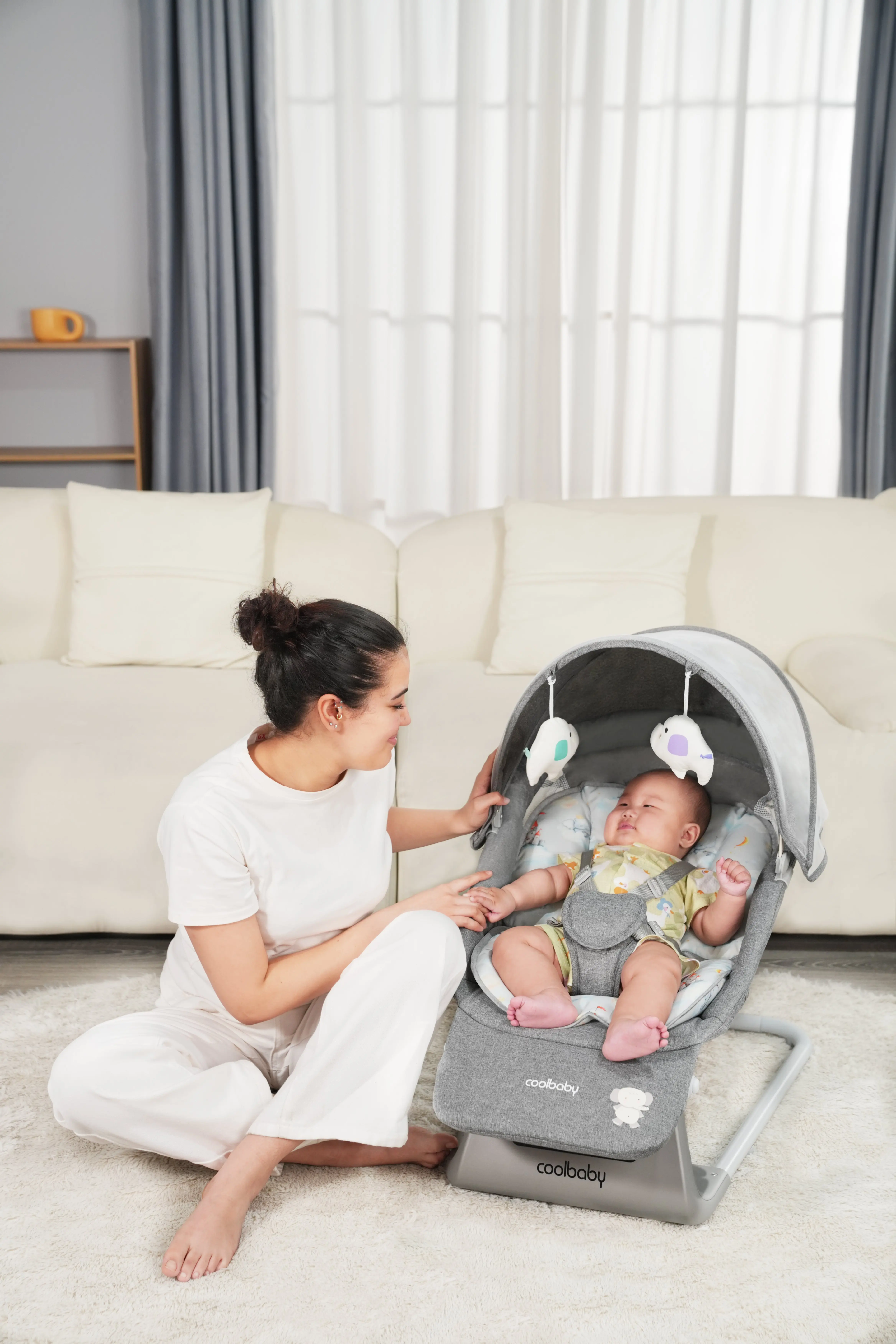 Mosquito Net with Canopy for All-Round Protection: Includes a mosquito net with a canopy that combines insect protection and shading. The net fully encloses the swing, blocking mosquitoes, flies, and other insects to protect the baby’s delicate skin from bites. The canopy also shields the baby from direct sunlight (great for indoor spots near windows) or harsh indoor lights, creating a soft, cozy environment for swings or naps.