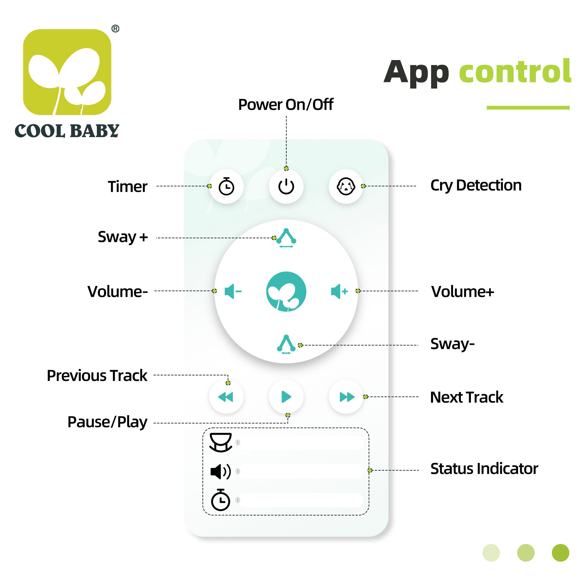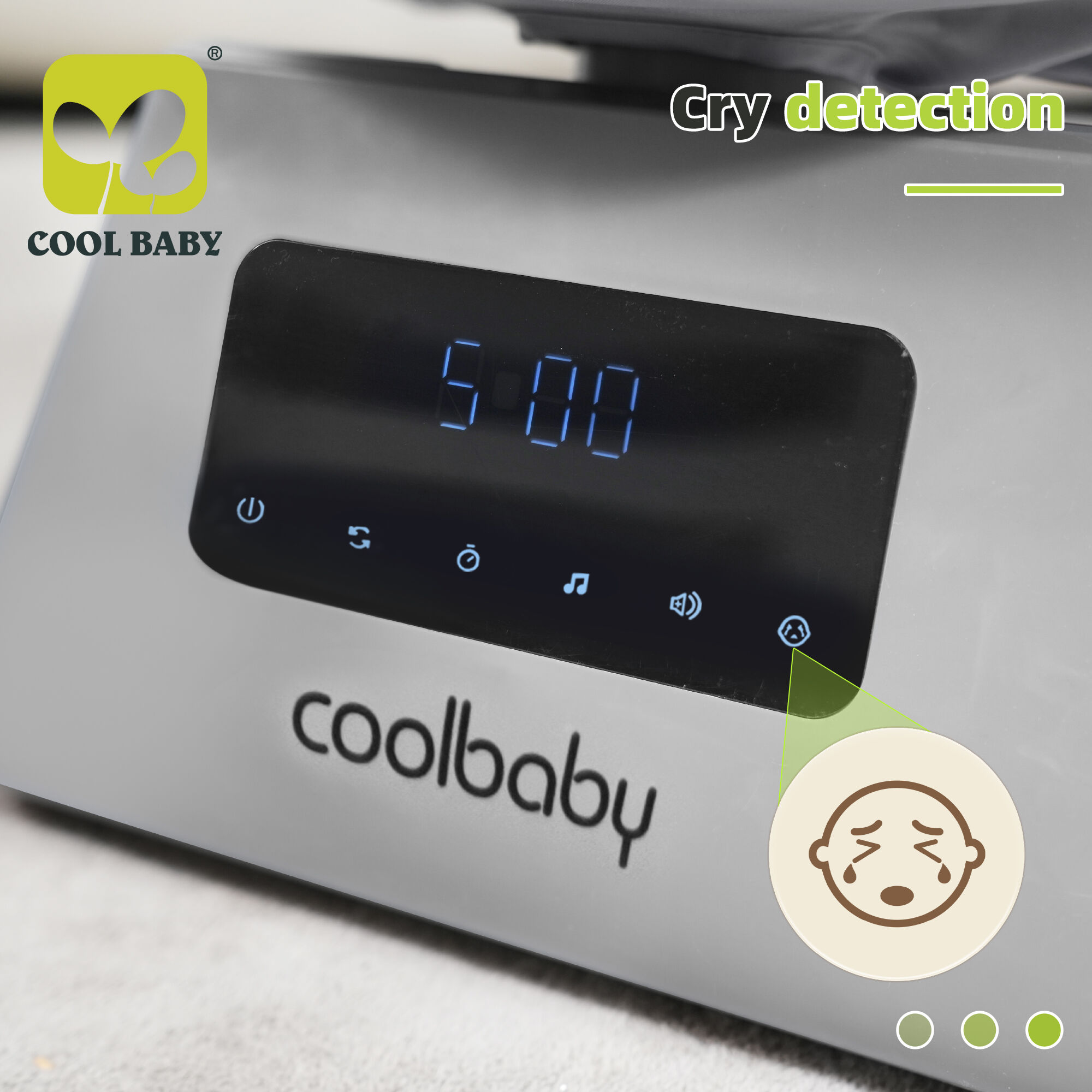 Phát Hiện Khóc Thông Minh & 11 Bản Nhạc Ru Được Tích Hợp Sẵn: Đi kèm chức năng phát hiện tiếng khóc—khi ghế xích đu cảm nhận được tiếng khóc của bé, nó sẽ tự động kích hoạt chế độ đung đưa và phát nhạc ru, mang lại sự an ủi kịp thời mà không cần chờ cha mẹ can thiệp. Ghế xích đu có 11 bản nhạc ru được tích hợp sẵn với âm lượng điều chỉnh được, đồng thời hỗ trợ kết nối Bluetooth để phát những bài nhạc yêu thích của bé hoặc giọng nói của cha mẹ từ điện thoại. Các lựa chọn âm thanh đa dạng giúp bé thư giãn nhanh hơn và cảm thấy an toàn hơn.