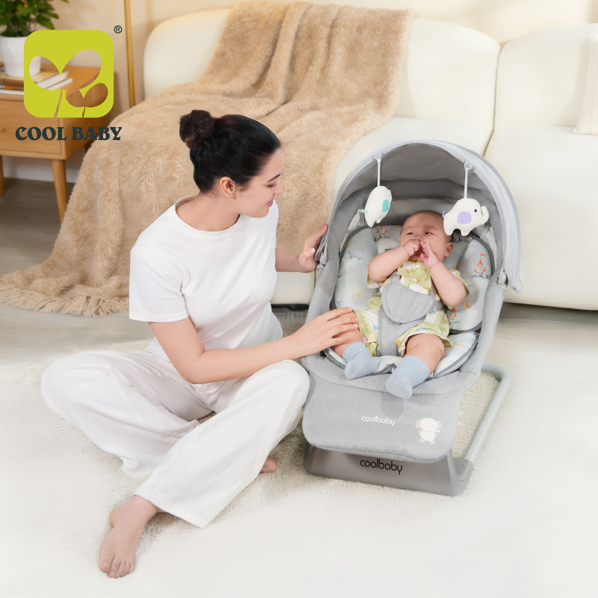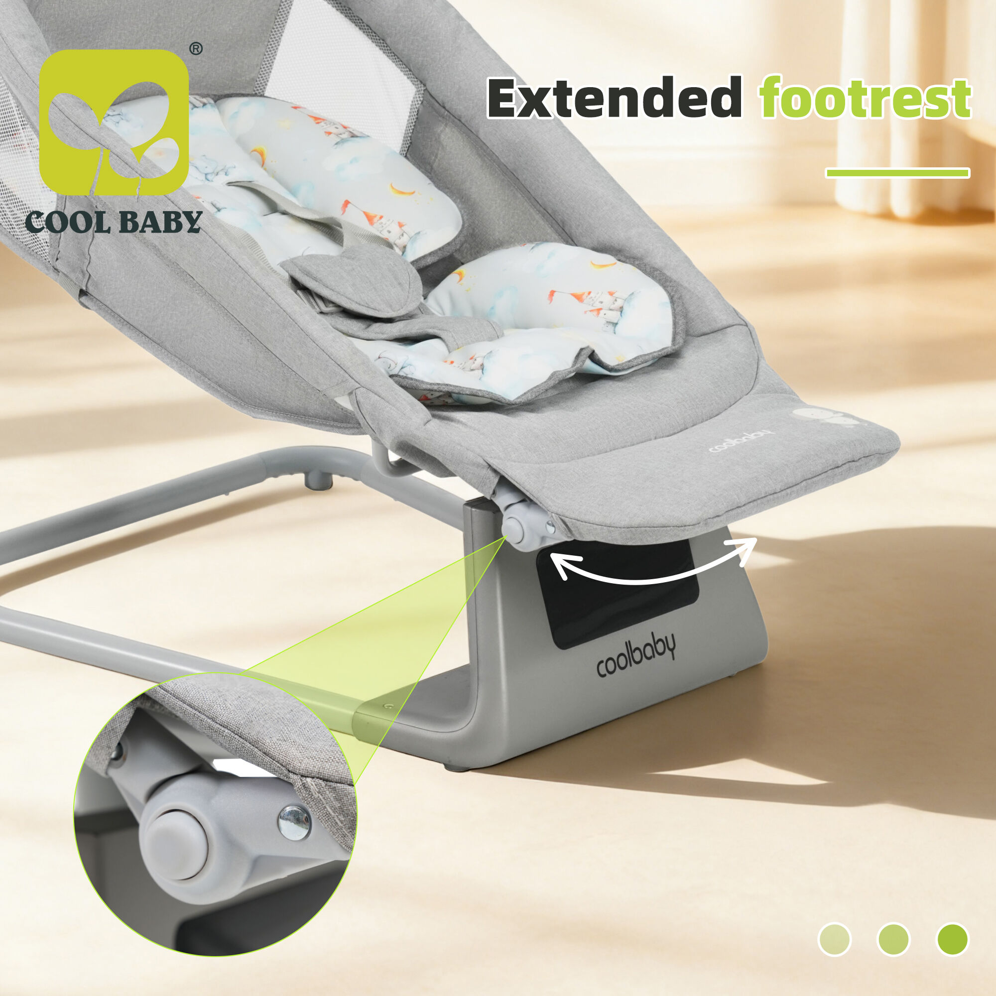 Ghế rung điện cao cấp cho trẻ sơ sinh CB003 Cool Baby Hot 5 trong 1 với bệ để chân điều chỉnh được